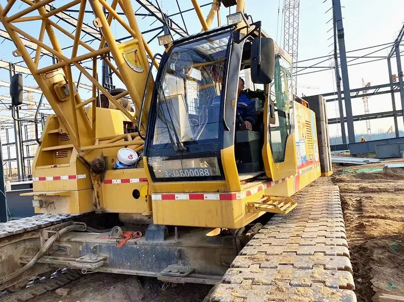 Prior to operation, inspect the entire machine's structure, hydraulics, wire ropes, safety devices, and site levelling. Confirm outriggers and tracks are fully extended. After start-up, idle for preheating while observing that gauges and pressures are normal. Select the appropriate lifting performance chart based on working conditions. Overloading, diagonal pulling, or forced lifting are strictly prohibited. During operation, maintain uniform speed for lifting, luffing, and slewing. Control slewing inertia and avoid abrupt stops or turns. Maintain stability when hoisting loads; prohibit personnel from crossing the danger zone. Strictly adhere to signal commands, closely monitor load positioning and torque limiter warnings. After completion, retract the boom to a safe position, disconnect power, clean the equipment, and complete inspection records. Operate in full compliance with regulations throughout to ensure personnel and equipment safety.
