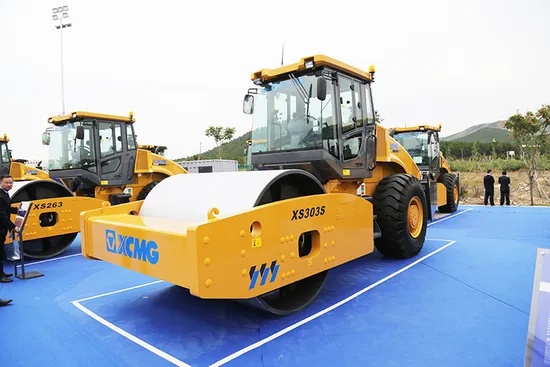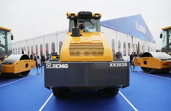 Before the XS303S operation, check the oil, steel wheels and sprinkler system. Select the high-amplitude (thick layer) or low-amplitude (thin layer) mode based on the material thickness. Maintain a uniform compaction speed. Do not idle when working on slopes. Be careful to avoid obstacles and follow the proper transition procedures. For details, please refer to the random operation manual.