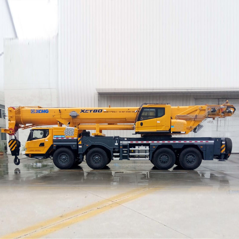 The XCT80L5 features a fully extended main boom length of 50.5 meters and comes standard with a 17.5-meter fixed jib. Its 5-section single-plate jib head design and dual-cylinder rope-row telescoping mechanism deliver industry-leading operational efficiency in high-frequency applications such as bridge construction over 30 meters and factory equipment installation.