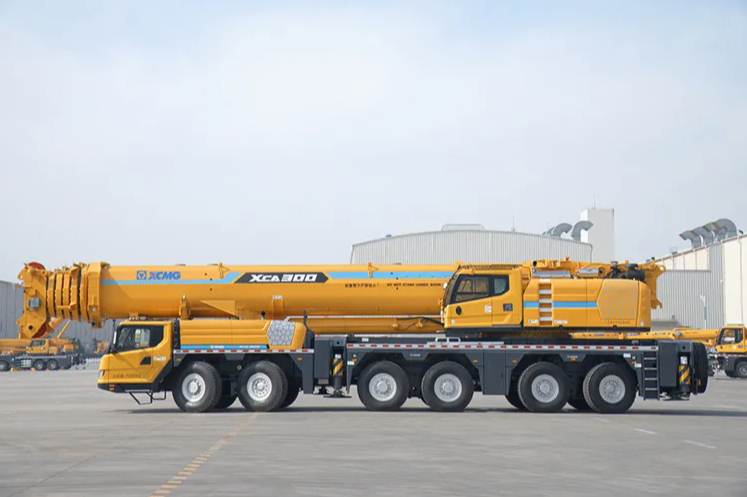 The QAY300 is a 300-ton class all-terrain crane designed for powerful lifting and exceptional maneuverability. Featuring a seven-axle chassis with five-axle steering and four-axle drive, it delivers a maximum rated lifting capacity of 300 tons. Its elliptical-section boom and single-cylinder, rope-free automatic telescoping system ensure highly efficient operation. With a top travel speed of 72-80 km/h and a maximum gradeability of 50%, it adapts to complex terrain and enables rapid relocation.