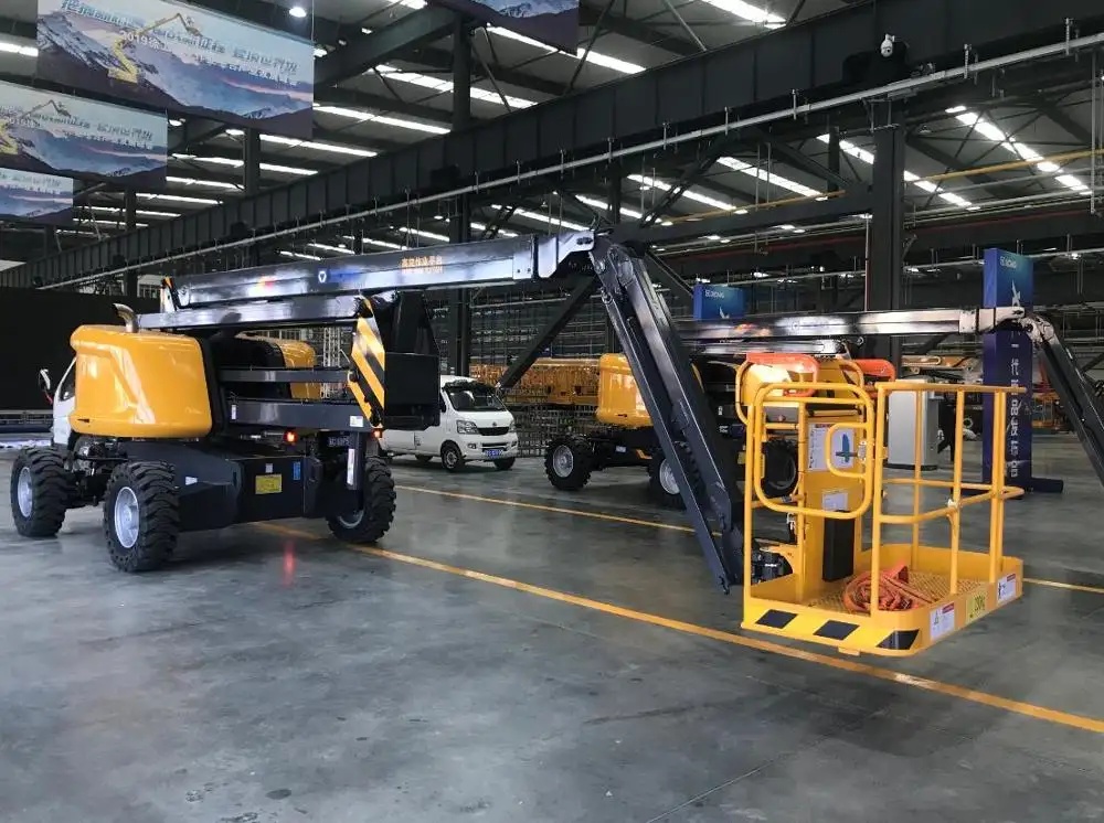 Check the condition of the equipment and the environment before starting the work. After startup, the equipment's movements and movement can be operated through the proportional control handle on the platform control box or the ground remote control. Pay close attention to the load indication and strictly prohibit overloading. By taking advantage of its articulated arm feature to overcome obstacles, the electric drive ensures low noise and no pollution during indoor operations. Use the emergency descent device in an emergency. Be sure to follow safety regulations to ensure smooth operation.