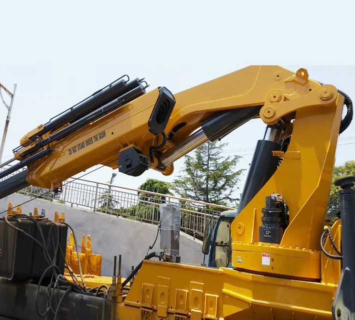 Before operation, check that the outriggers are fully extended and ensure the ground is solid. Keep the vehicle level during operation and never overload it. Operate the folding arm smoothly and slowly, maintaining a safe distance from surrounding obstacles. Rotate slowly and at a steady speed, avoiding sudden stops or turns. Regularly inspect the wire rope for wear. After completing the task, retract the folding arm, secure the hook, and maintain daily equipment maintenance records.