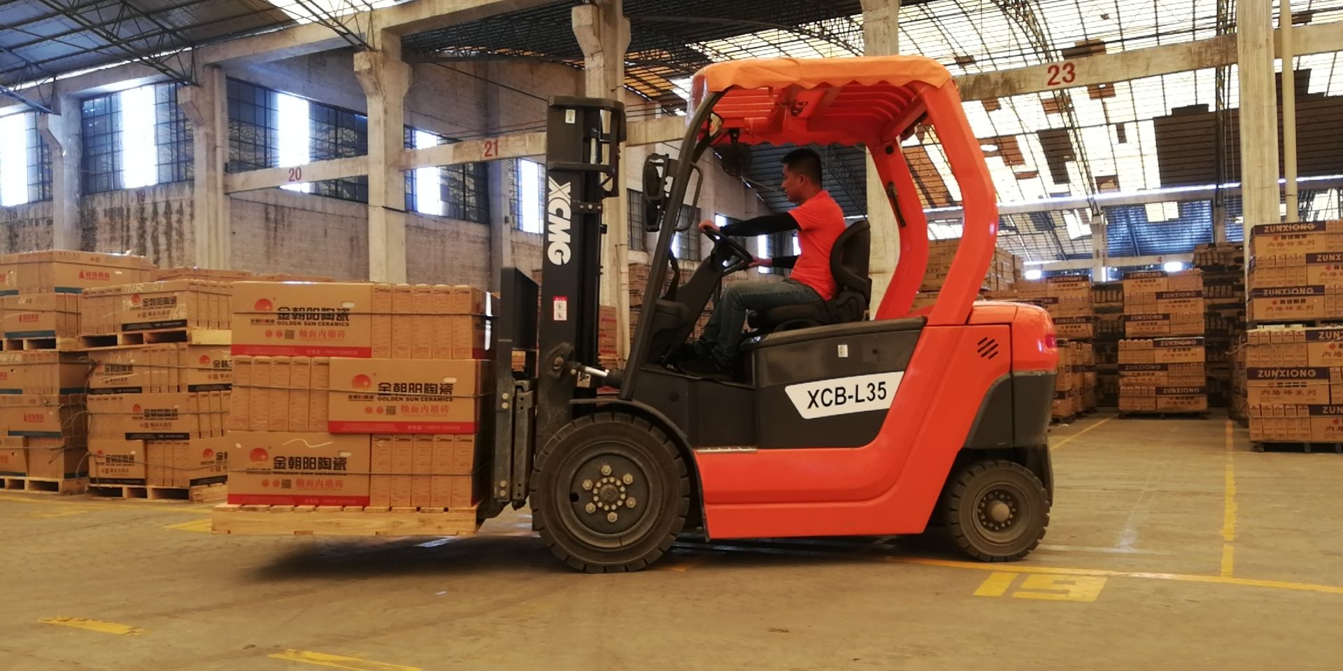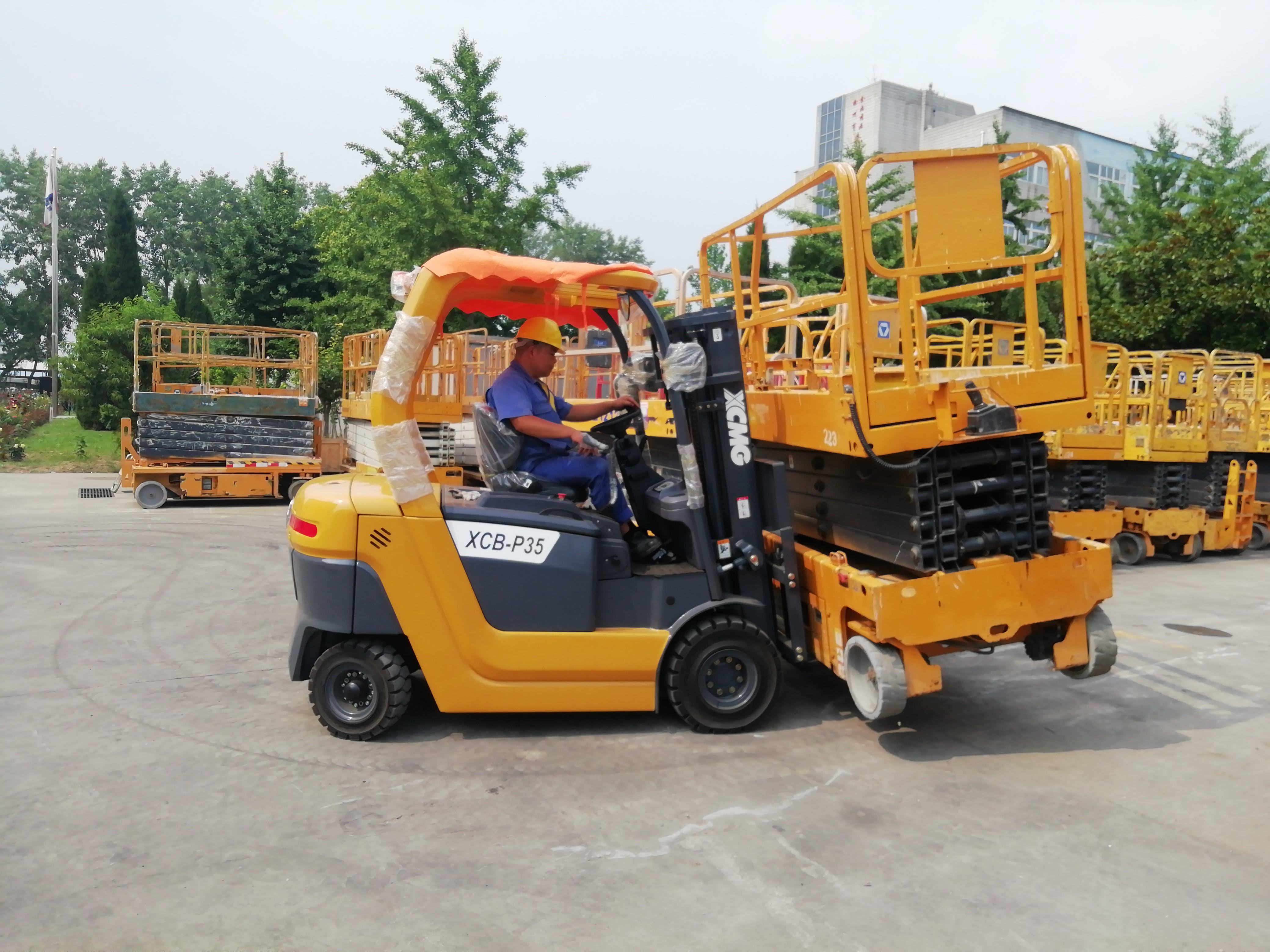 The operation of the XCB-L35 electric forklift must follow safety regulations. Before starting the operation, conduct a round-around inspection to confirm that the battery power, tires, forks and instrument indications are all normal. When starting, make sure the gear is in neutral and fasten your seat belt after sitting steadily. Maintain a smooth acceleration while driving, slow down in advance when turning, and pay attention to the surrounding environment and blind spots. When loading and unloading goods, align with the cargo position and tilt the mast slightly forward. The lifting and lowering should be smooth. After the goods are lifted, the mast should be tilted backward to prevent it from sliding. Overloading operation is strictly prohibited. After the operation, lower the fork to the lowest position, pull the handbrake tightly, turn off the power, and remove the key. Regular maintenance is the key to ensuring safe and efficient operation.