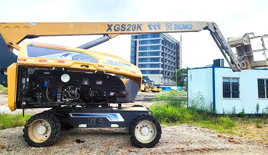 The XGS20K electric aerial work platform is intelligent and convenient to operate. Before starting the operation, it is necessary to check that the structure, battery and functions are in good condition. After startup, it can be operated through the platform control box or the ground remote control, sensitively responding to lifting and traveling. The equipment is integrated with an intelligent safety system, featuring tilt protection, emergency descent and self-diagnosis of faults, ensuring operational safety. It adopts pure electric power, features low noise and zero emissions, and is suitable for high-standard indoor and outdoor working conditions. All operators are required to be certified and strictly abide by the manual procedures to ensure efficient and safe production.